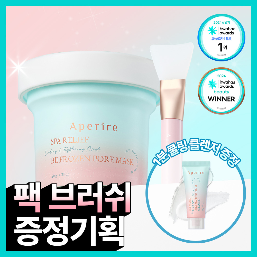 53▲ 46 | ![[화잘먹/쿨링모공팩]아페리레 스파 릴리프 비 프로즌 빙하토 포어 마스크 기획 (120g+팩 브러쉬)](https://image.oliveyoung.co.kr/cfimages/cf-goods/uploads/images/thumbnails/10/0000/0016/A00000016766260ko.jpg) | [화잘먹/쿨링모공팩]아페리레 스파 릴리프 비 프로즌 빙하토 포어 마스크 기획 (120g+팩 브러쉬) | 아페리레 | | ⭐ 4.7 | |