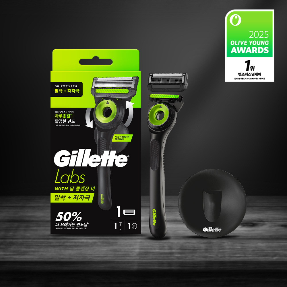 22- | 질레트 랩스 딥클렌징바 면도기 네온 나이트 에디션 (핸들+1입날+거치대) | 질레트 | ₩20,700 | ⭐ 4.9 | 576 +0 | |