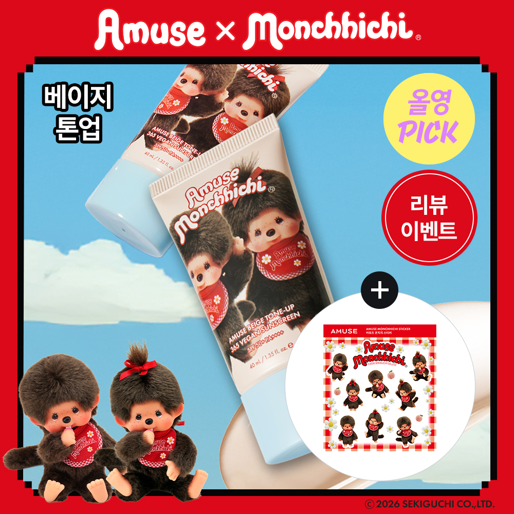 95▼ 34 | ![[4월올영픽/몬치치] 어뮤즈 베이지 톤업 365 비건 선크림 (+몬치치 스티커 증정)](https://image.oliveyoung.co.kr/cfimages/cf-goods/uploads/images/thumbnails/10/0000/0020/A00000020370733ko.jpg) | [4월올영픽/몬치치] 어뮤즈 베이지 톤업 365 비건 선크림 (+몬치치 스티커 증정) | 어뮤즈 | | ⭐ 4.8 | |