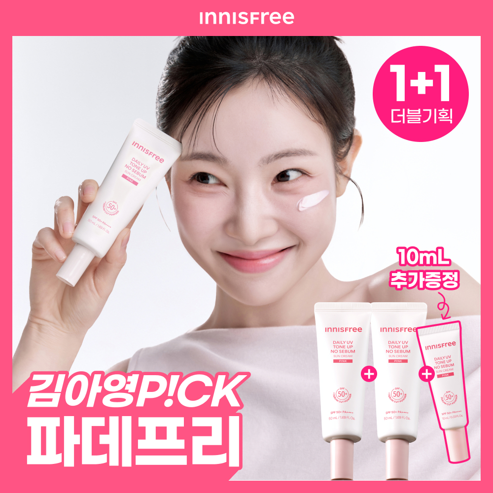 36▲ 3 | ![[1+1/뽀용톤업] 이니스프리 데일리 유브이 톤업 노세범 선크림 50ml 더블 기획 핑크](https://image.oliveyoung.co.kr/cfimages/cf-goods/uploads/images/thumbnails/10/0000/0024/A00000024724134ko.jpg) | [1+1/뽀용톤업] 이니스프리 데일리 유브이 톤업 노세범 선크림 50ml 더블 기획 핑크 | 이니스프리 | | ⭐ 4.8 | |